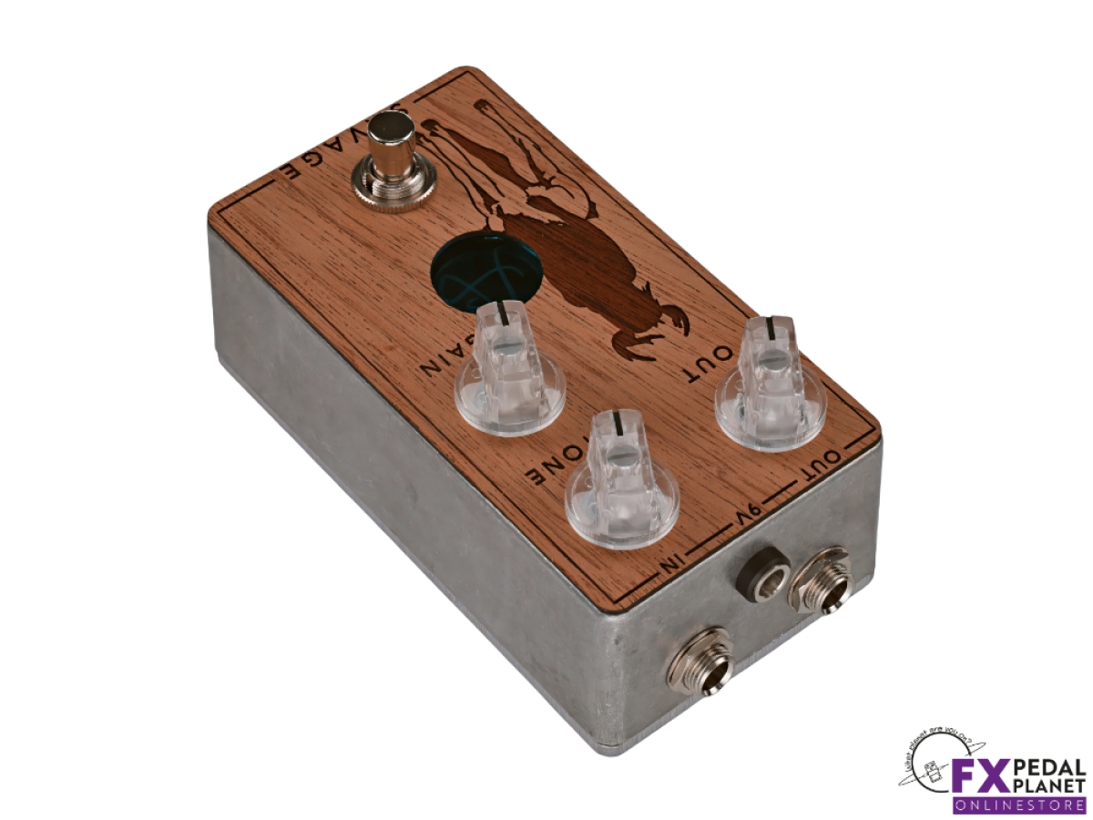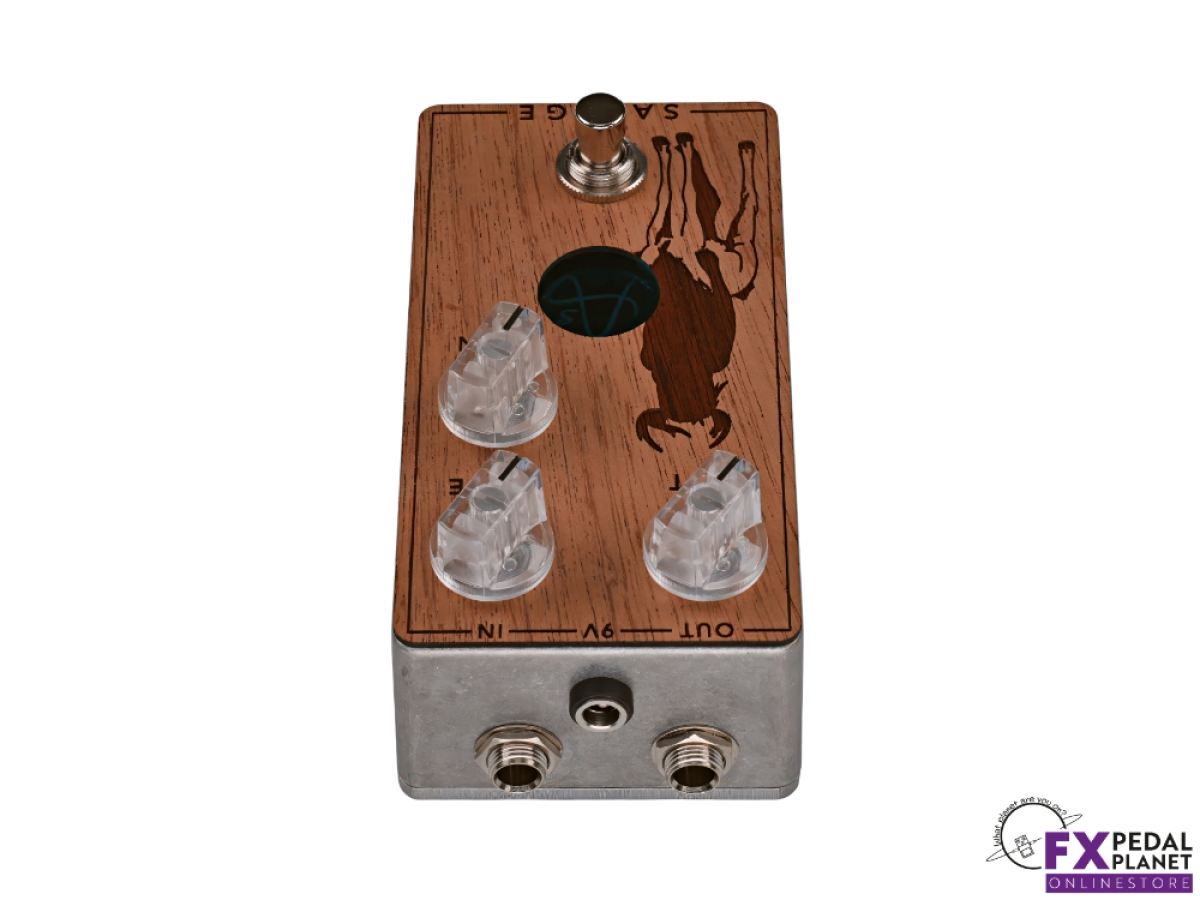 Built in France, the Anasounds Savage is housed in a durable die cast aluminium enclosure with a real mahogany faceplate, carefully sanded, varnished and laser etched with the distinctive Centaur design. Emerald mirror plexiglass detailing and a branded illuminated logo give it a unique stage presence, while remaining clear and easy to read under lighting. The adjustable LED indicator makes it simple to see whether the pedal is engaged, even on darker stages.