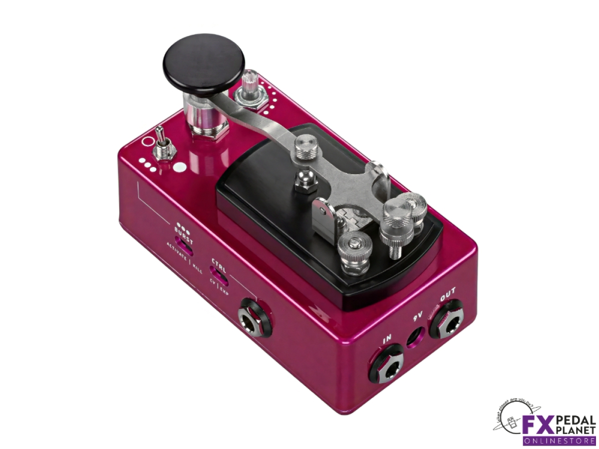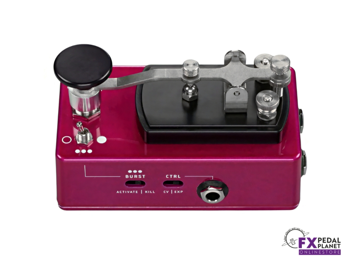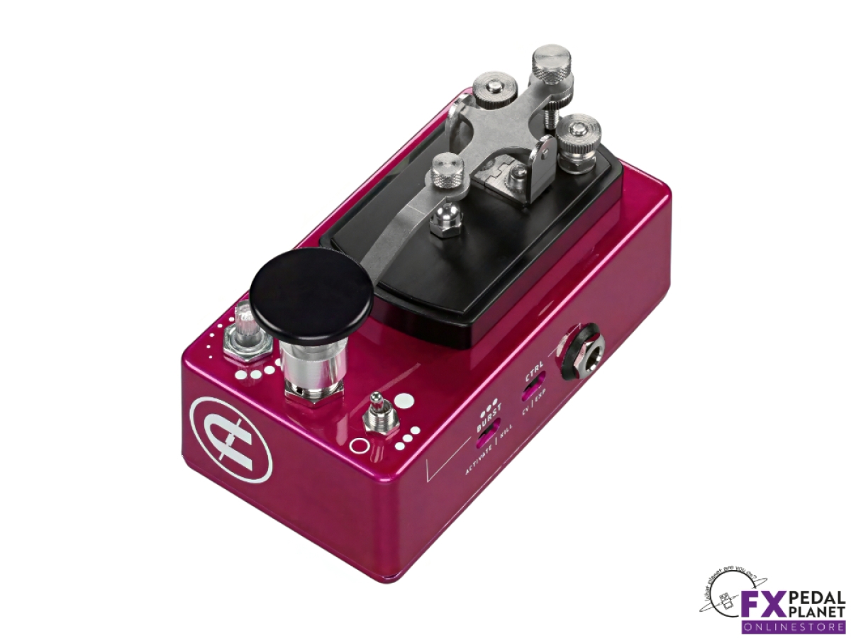 When activated, the CopperSound Pedals Telegraph V2 can deliver classic killswitch behaviour: the signal will be cut or allowed through manually, giving precise control for staccato riffs, silence cuts, or sudden re entries. On top of that it offers a Burst mode driven by an active circuit: you can dial in a tremolo style stutter, with rate control, to create rhythmic textures that range from subtle pulses to rapid fire chopping effects. That means you can use it to generate flutter style rhythmic patterns or glitch style bursts, perfectly synced to your timing or played freehand.