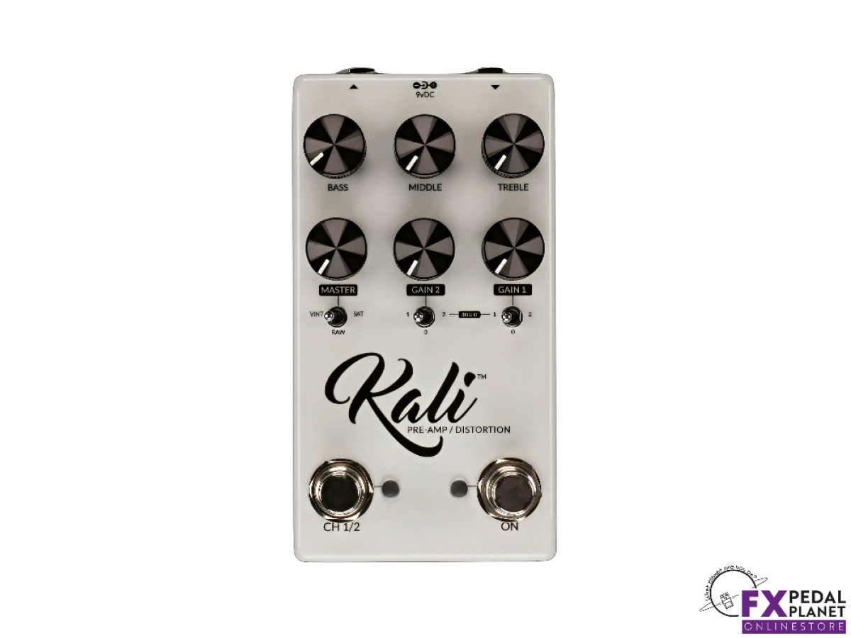 Internally the Fortin Amplification Kali uses high grade components and is made in the U.S.A. It provides relay based true bypass switching, ensuring your signal path stays pure when the effect is unplugged. The “On/Off” footswitch remembers the state when powered down, so it returns to that setting when the pedal is powered back up. The unit runs on 9 V DC (centre pin negative, regulated supply required) with a current draw of approximately 115 mA.