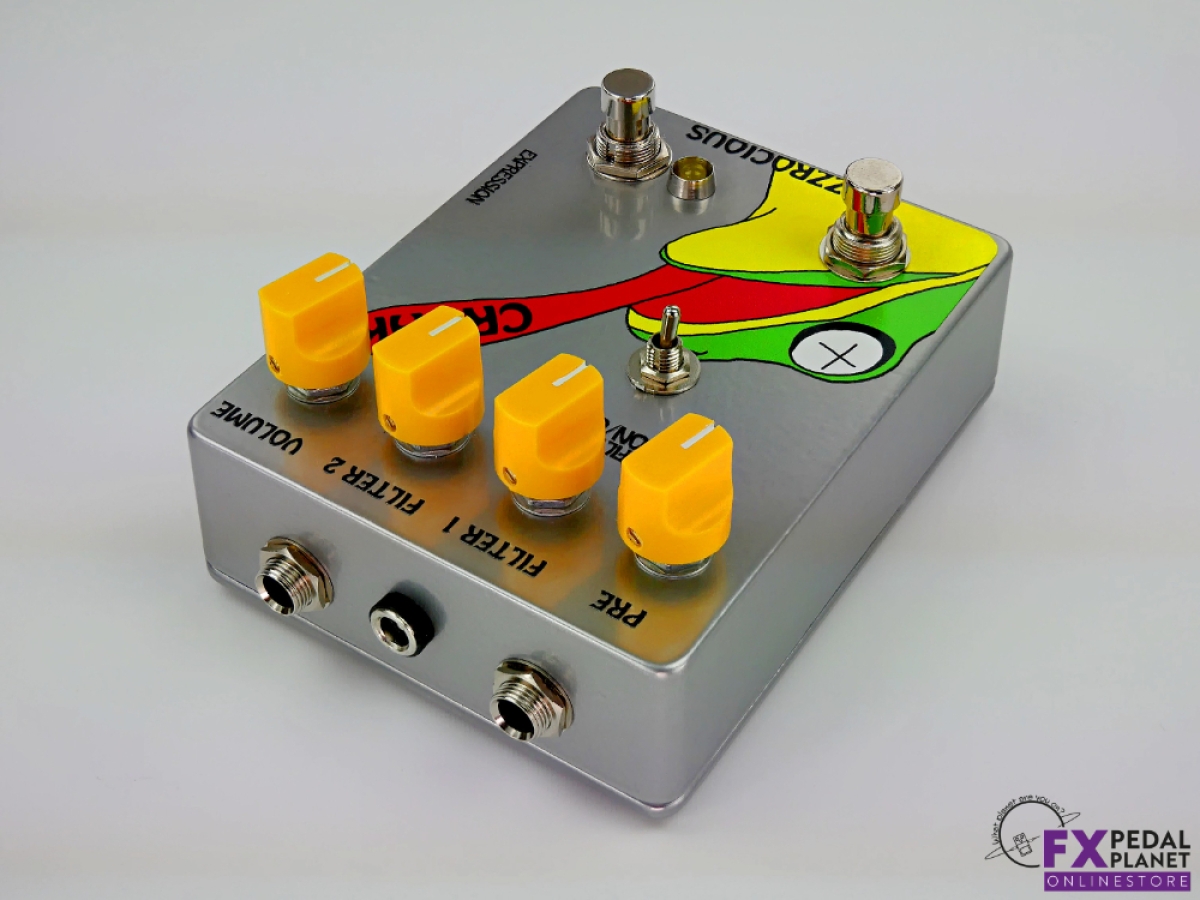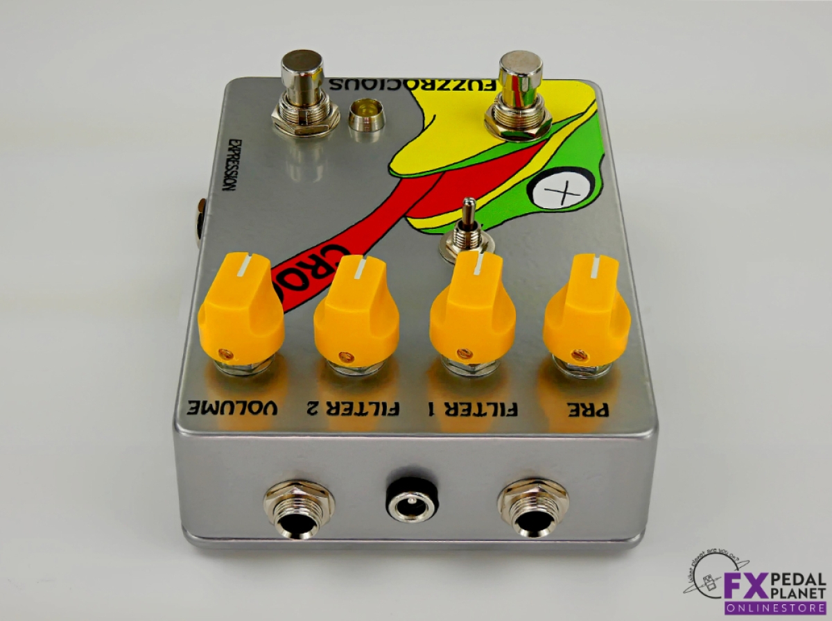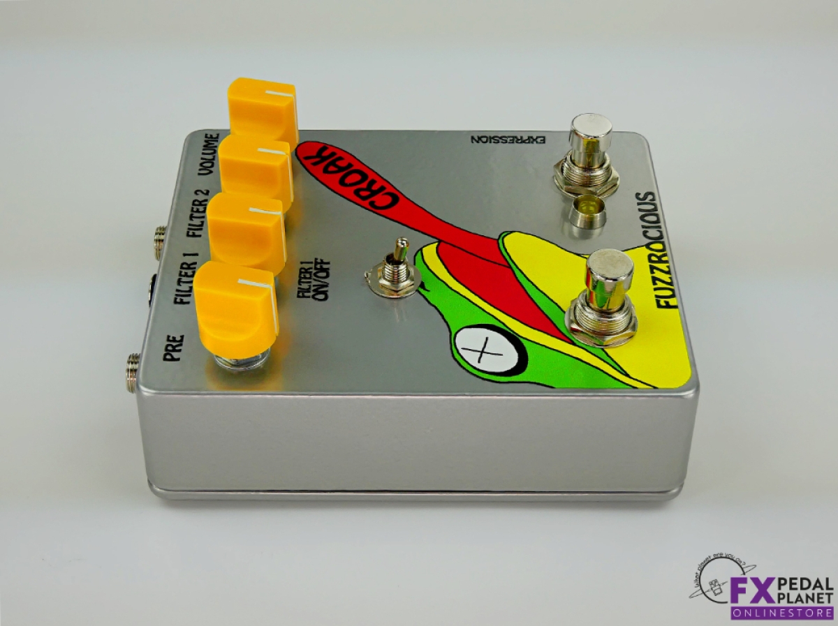 Fuzzrocious Pedals Croak is an “expressive double filter fuzz”. OK, so what does that actually mean? Within the Fuzzrocious Pedals Croak, there are two filters pushed by a fuzz that opens up to more control via an expression pedal jack. Think, fuzz, filter, double filter and envelope filter, all in one superb hand built pedal.