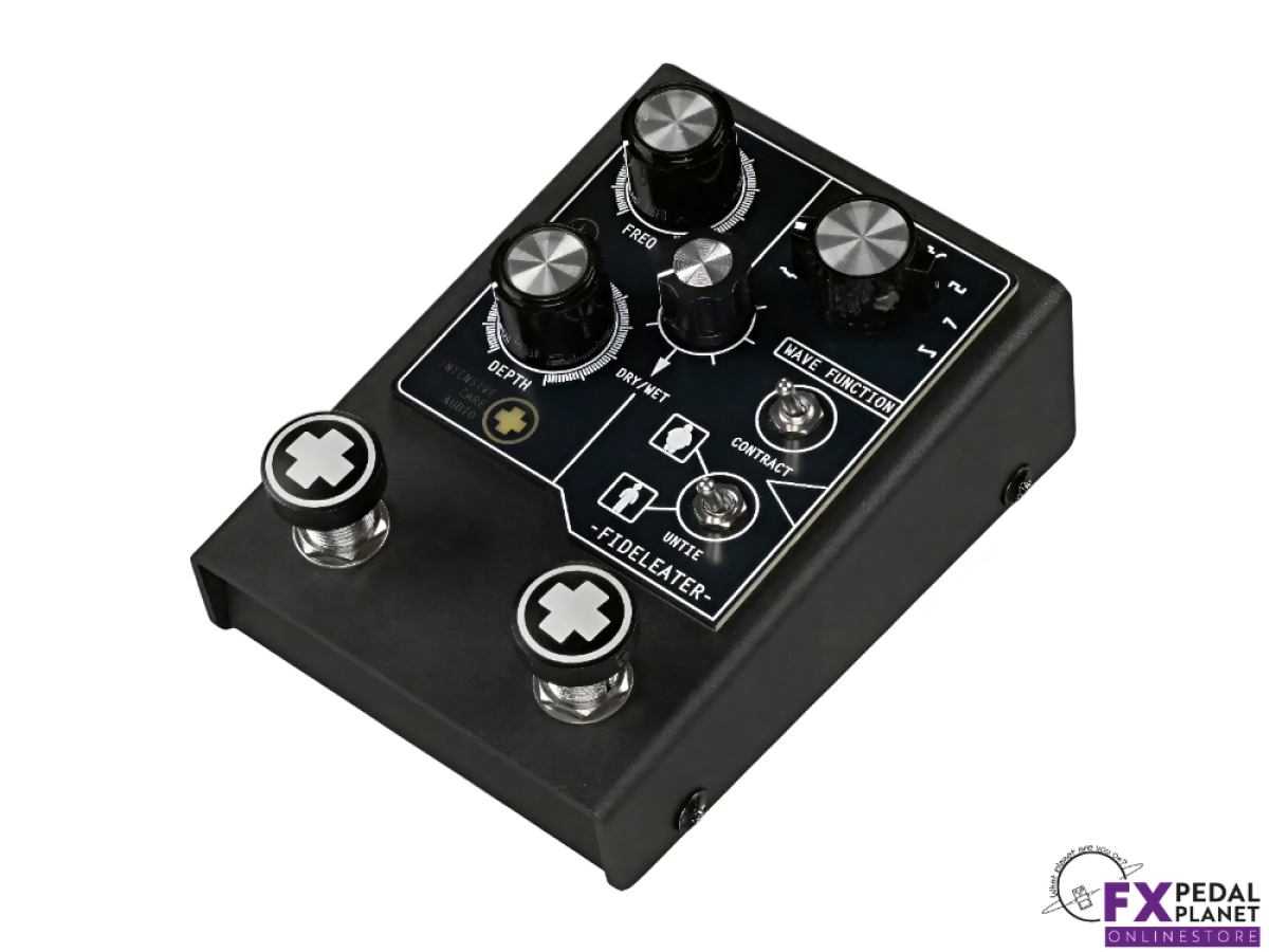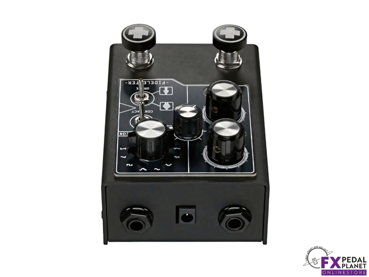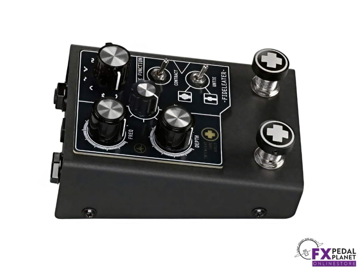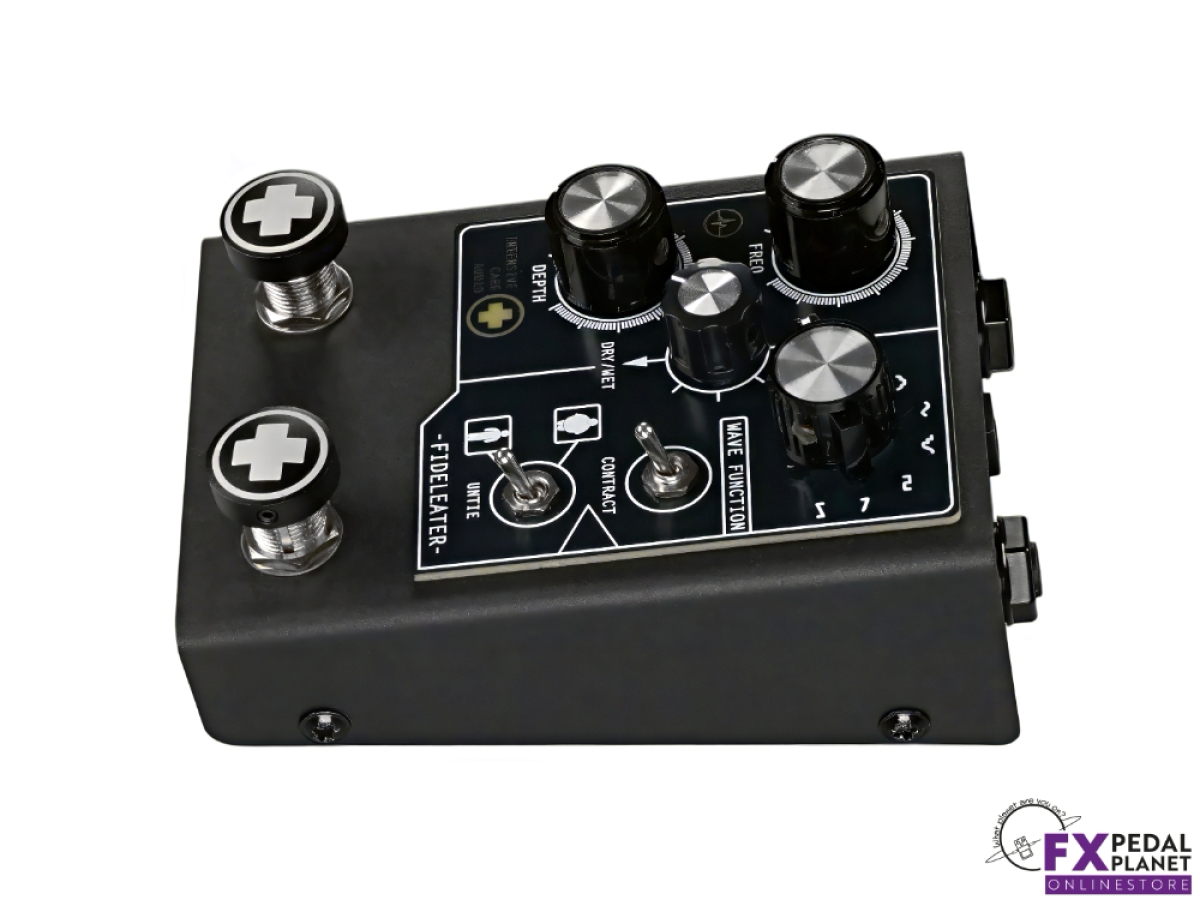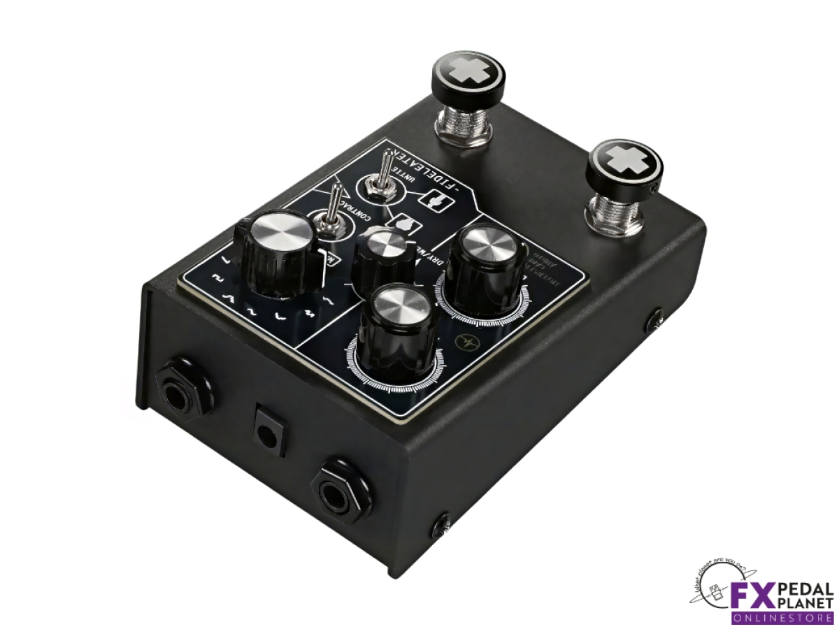 Built by hand in London, England, the Fideleater uses high quality components and features soft touch momentary footswitches for both bypass and tap tempo. The metal wedge enclosure is finished in textured black powder coat, offering durability for regular gigging. Two tone colourways and clear, clinical-inspired graphics make the controls easy to read under stage lighting while giving the pedal a distinctive visual identity.