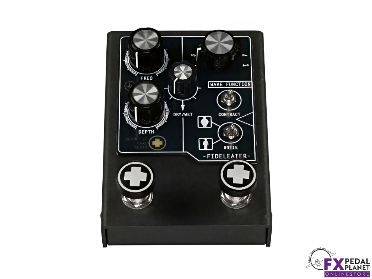 The Intensive Care Audio Fideleater is a lo-fi chorus, vibrato and delay pedal designed to bring character, movement and creative unpredictability to guitar and bass rigs. Equally at home in indie, ambient, experimental, post-punk and alternative styles, it moves from subtle detuning and tape-like wobble to unstable, glitch-driven delay textures. Used sparingly, it adds depth and width; pushed harder, it delivers warped modulation and fractured digital repeats that reshape an otherwise polite signal.