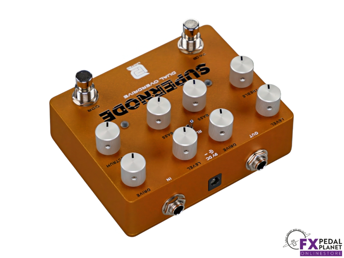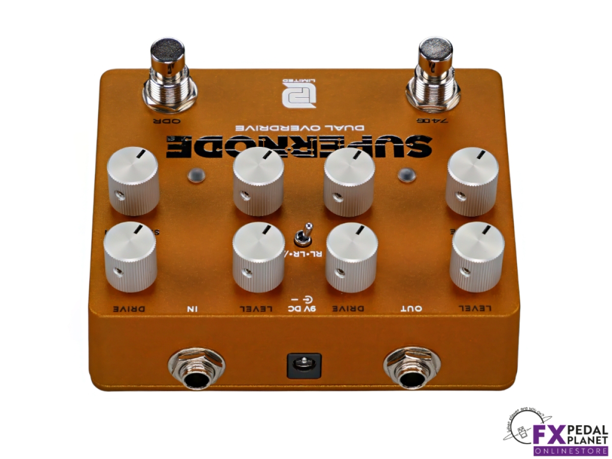 The LPD Pedals Supernode is an all-analogue dual overdrive built as a flexible drive section for a working pedalboard, giving guitarists and bass players two distinct gain voices that can be used alone, stacked, or blended to suit anything from cleanish rhythm work to pushed leads. Its left and right layout keeps each circuit clear and quick to operate on stage, while the order/parallel selector and programmable switching make it equally comfortable in a simple rig or a more involved board where gain staging needs to change song by song.