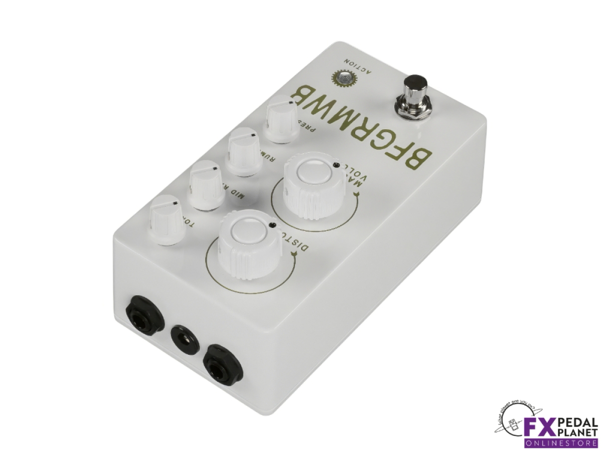 The control layout lets players shape their distortion with purpose. Beyond the main distortion and master level controls, there’s a MID RANGE knob to adjust where the punch sits in your tone, a RUMBLE control to tame or unleash the low end for tighter or bigger bass response, and a PRESENCE control to tame harsh treble or add clarity and contour. This extended EQ section makes the pedal versatile for a range of styles, from classic rock to heavier, fuzz centric genres.