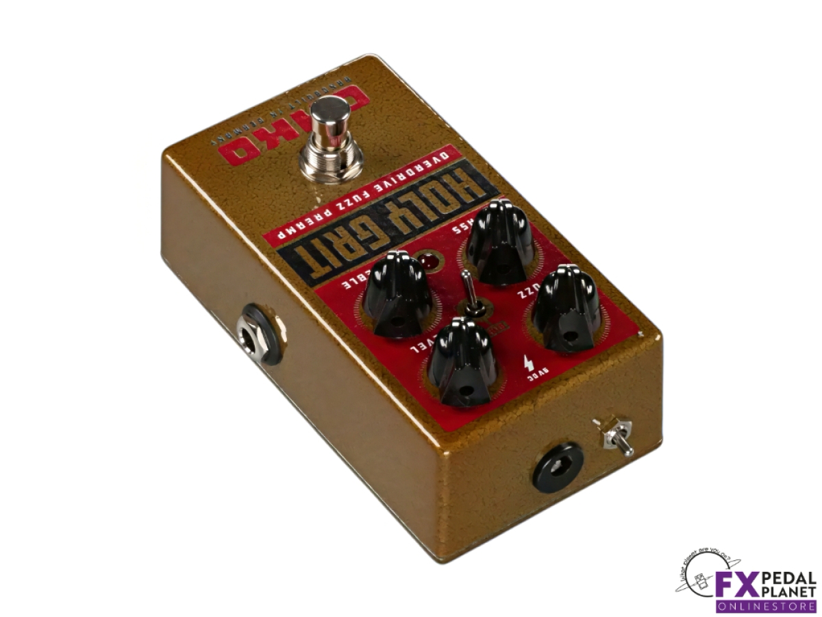 OKKO FX Holy Grit is hand built and wired in Germany and housed in a robust all-metal enclosure designed for regular gigging and studio use. The retro red and black graphics are clear and easy to read on stage, and the LED indicator provides a clear visual reference for on and off status. True bypass switching preserves signal integrity when the pedal is disengaged, while the optional buffer offers added flexibility depending on rig requirements.