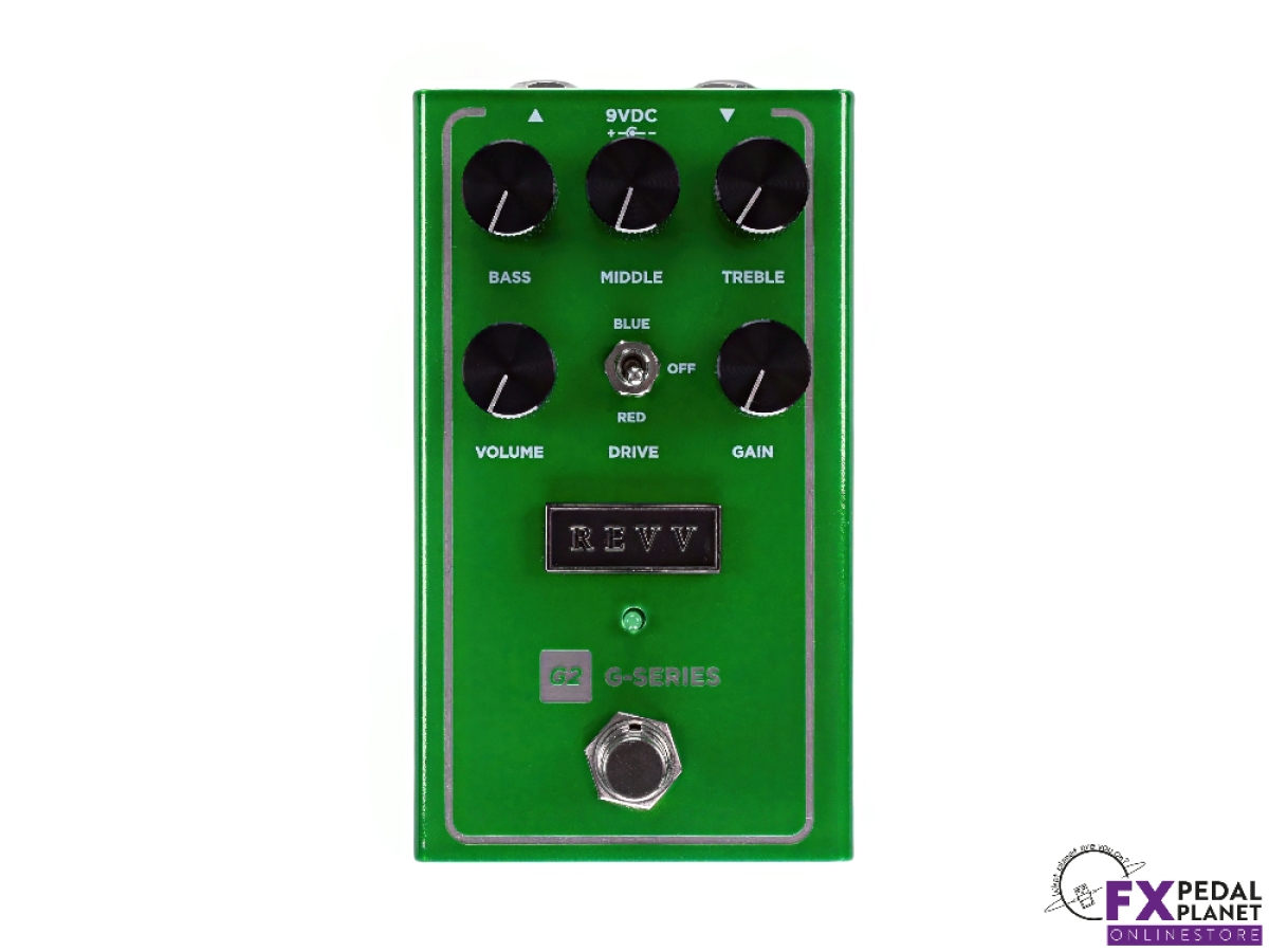 The Revv Amplification G2 overdrive pedal is an “amp in a box” stompbox that brings the character and feel of a classic tube amp’s crunch channel into a compact, pedalboard friendly format. It faithfully recreates the Green channel circuitry from Revv’s Generator amplifiers, giving guitarists a versatile tool that fits clean boosts, overdrive, or pre amp duties, whether placed in front of an amp, used in an effects loop, or driving a modelling/IR setup.