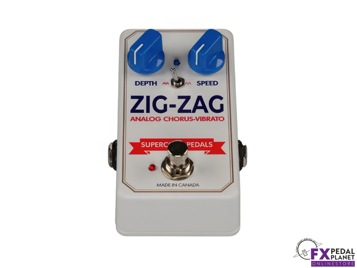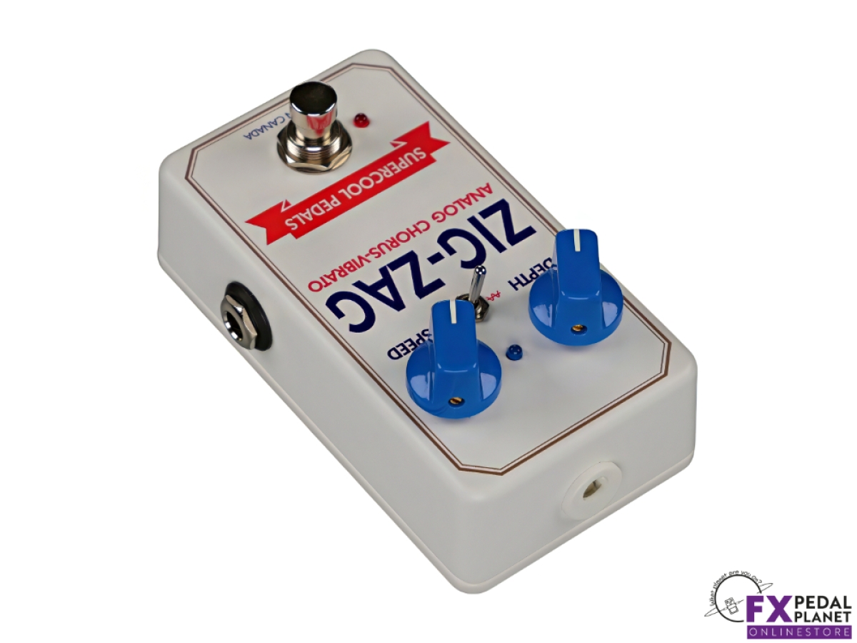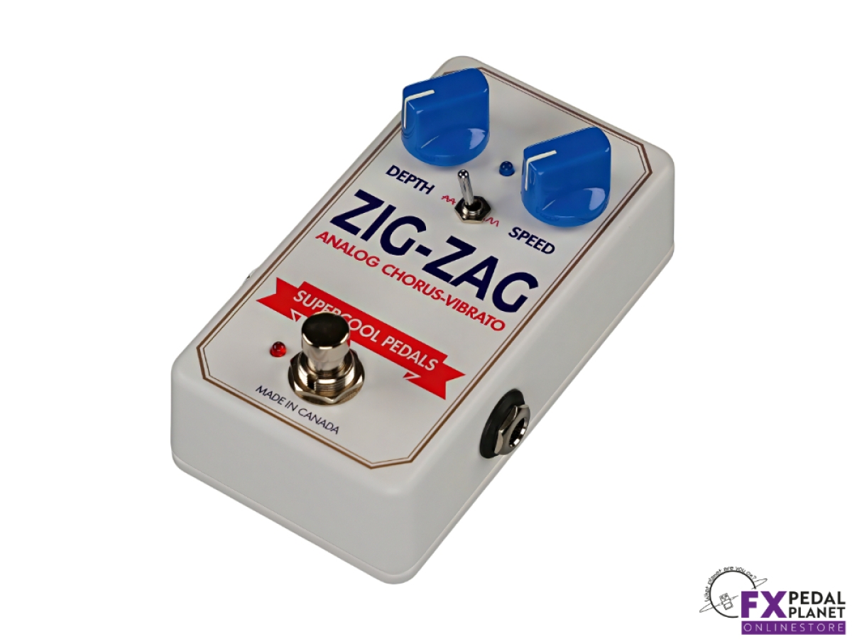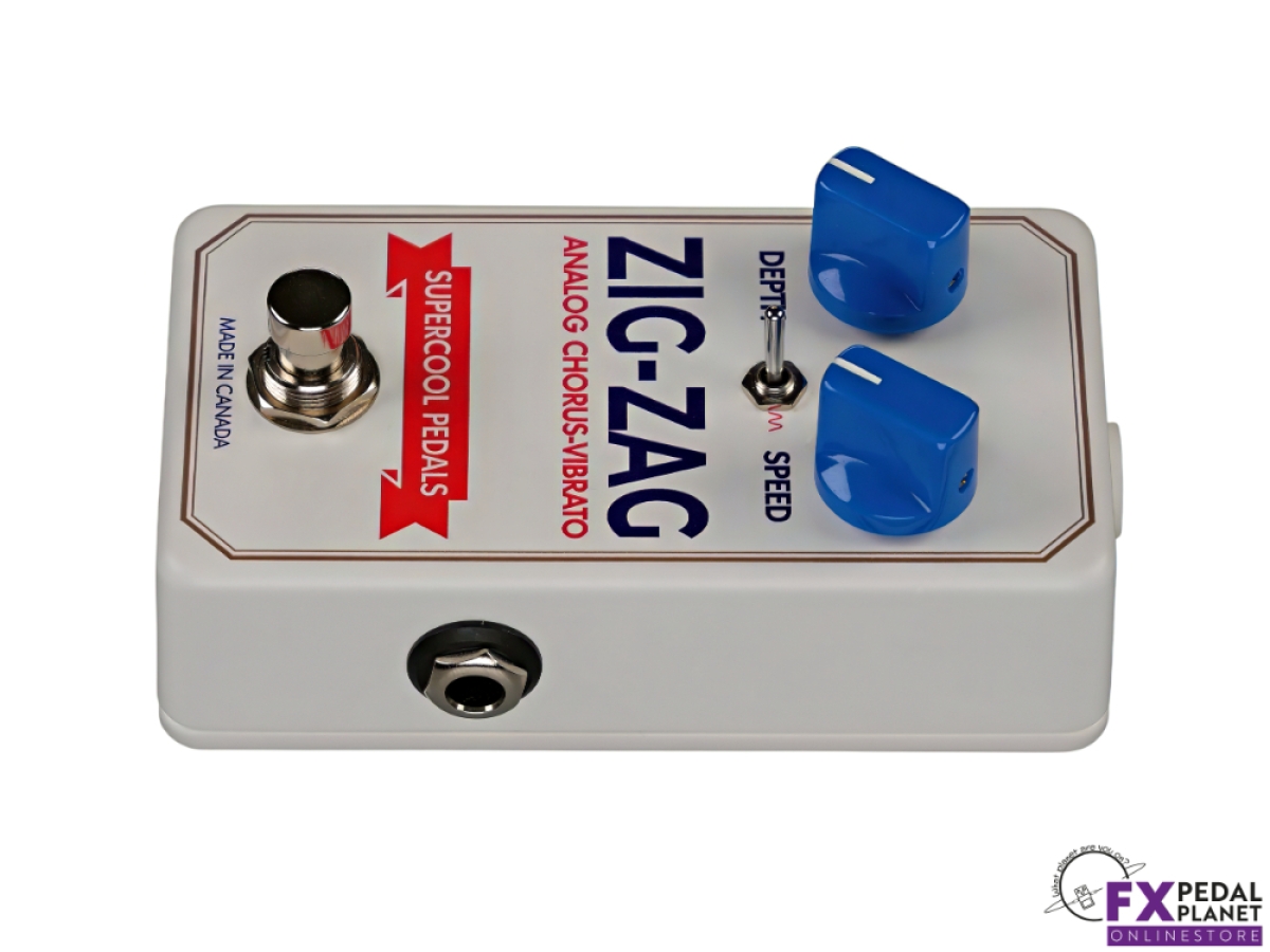 The Supercool Pedals Zig-Zag Analog Chorus and Vibrato is a compact analogue modulation pedal designed to bring classic Small Clone-inspired chorus textures and expressive vibrato to modern pedalboards. Built in Canada, it delivers the rich, dimensional pitch movement associated with vintage bucket brigade designs, while offering a simplified control layout and practical features suited to today’s players. Equally at home with guitar or bass, it suits everything from alternative rock and indie to ambient soundscapes, post-punk textures and classic clean chorus tones.