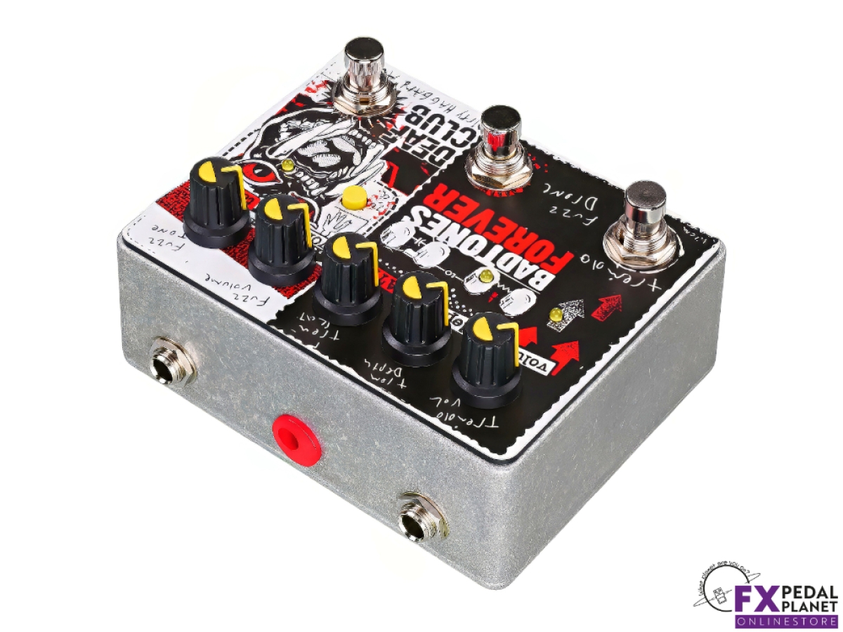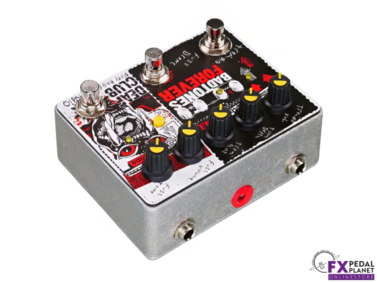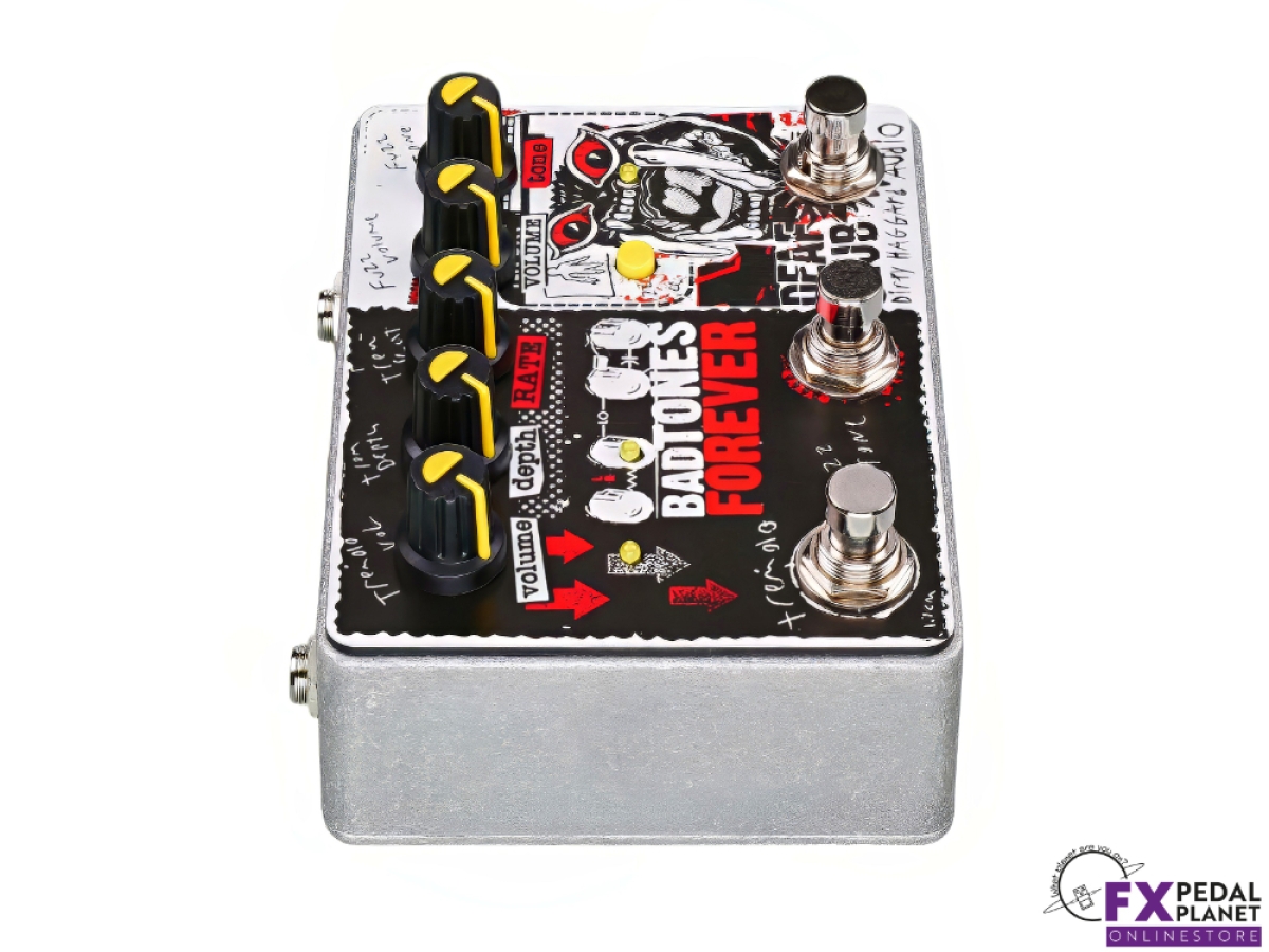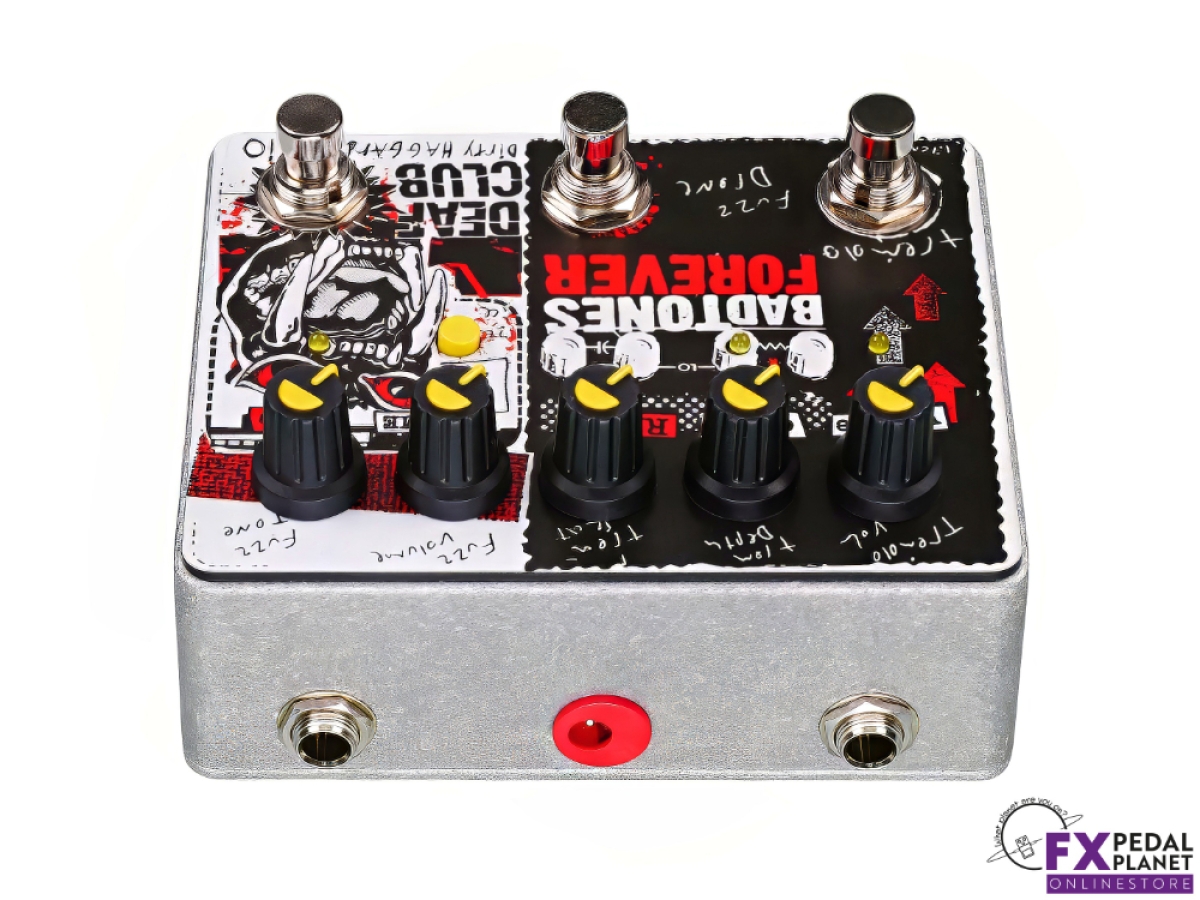 Housed in a rugged, all metal enclosure, the Dirty Haggard Audio Bad Tones Forever is built to withstand relentless stomping and high energy performances. The graphics are bold and uncompromising, matching the pedal’s sonic attitude and making a statement on any pedalboard.