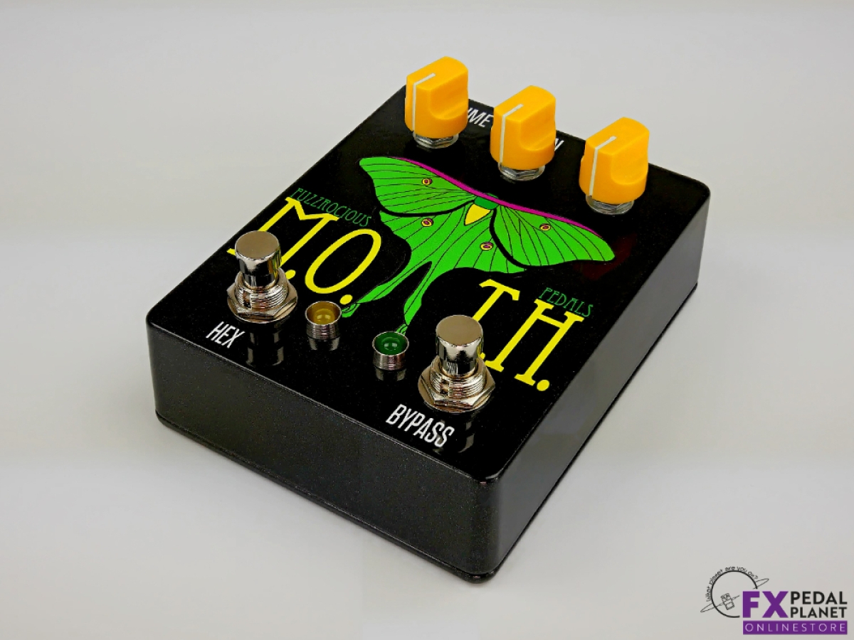 The Fuzzrocious Pedals M.O.T.H. is a fantastic effects pedal that will add creativity to your playing, sound and texture. Turn your guitar, bass or other instruments into a psychedelic space moth with the Fuzzrocious Pedals M.O.T.H.