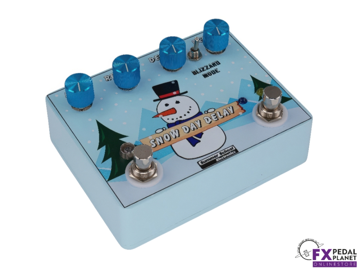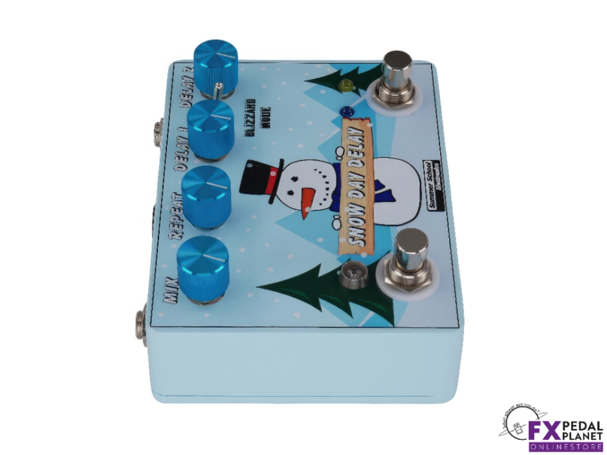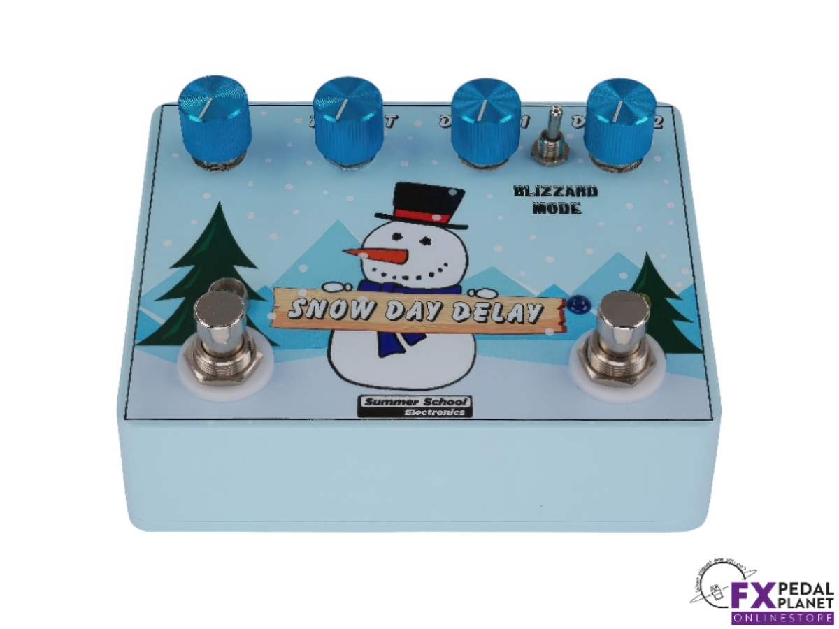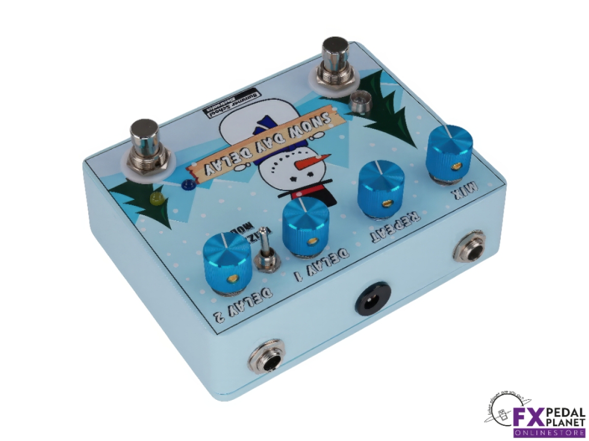 The Snow Day Delay by Summer School Electronics is a powerful, versatile delay pedal that brings creative freedom to any rig. As the brand's first time based effect, the Summer School Electronics Snow Day Delay combines two independent PT2399 delay chips, allowing players to switch between two distinct delay settings or run them simultaneously for a wealth of sonic options. With four unique delay modes, the Summer School Electronics Snow Day Delay can deliver anything from crisp digital echoes to warm, saturated tones and even dynamic, percussive soundscapes.