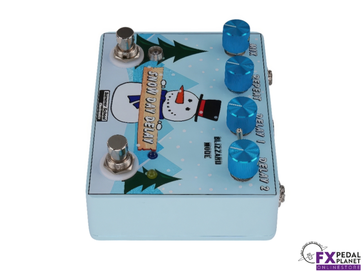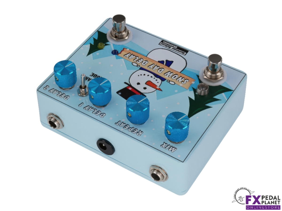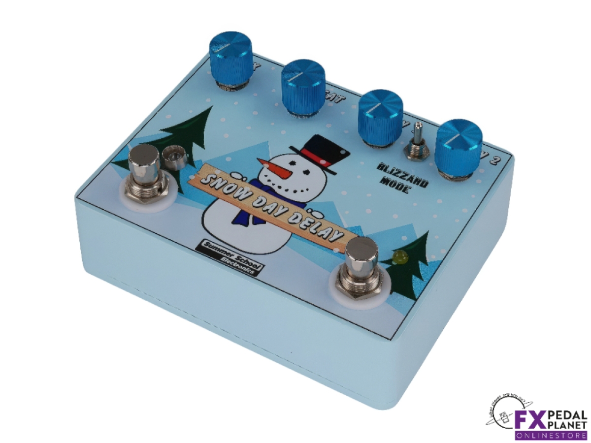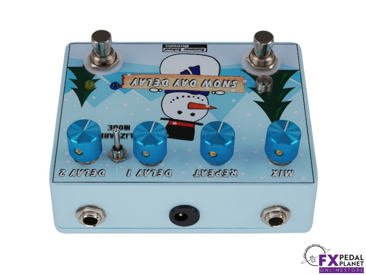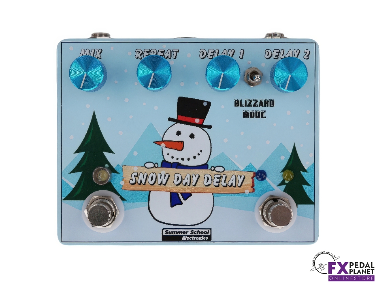 The Snow Day Delay by Summer School Electronics is a powerful, versatile delay pedal that brings creative freedom to any rig. As the brand's first time based effect, the Summer School Electronics Snow Day Delay combines two independent PT2399 delay chips, allowing players to switch between two distinct delay settings or run them simultaneously for a wealth of sonic options. With four unique delay modes, the Summer School Electronics Snow Day Delay can deliver anything from crisp digital echoes to warm, saturated tones and even dynamic, percussive soundscapes.